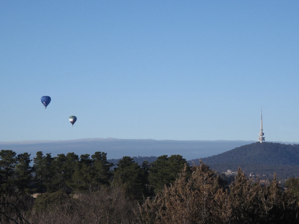 This morning when I was eating breakfast staring out the kitchen window, I noticed some hot air balloons in the far distance. One thing I absolutely love about my hometown of Canberra is the skyline on a winter's morning. More often than not, you'll see some hot air balloons in the distance, hovering above Lake Burley Griffin. It's a gorgeous sight and I managed to snap some quick photos with my frozen fingers =) What a great way to start the day!