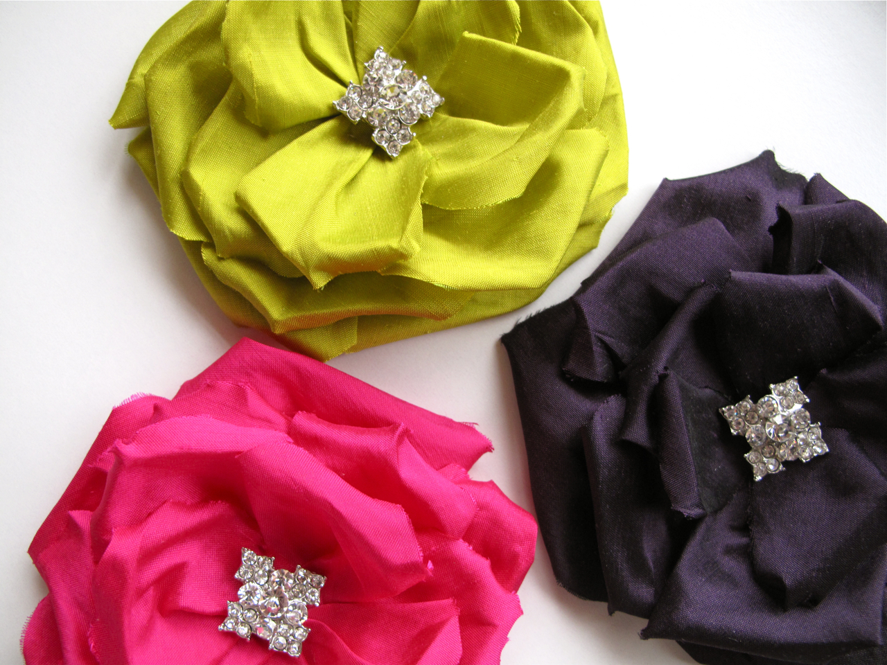 | LULU silk dupion handmade flowers with rhinestone centres |