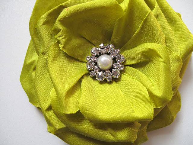 These little beauties are made from 100% silk dupioni so they can be made in virtually any colour under the sun. Each petal has been hand cut, formed, treated and assembled. Due to the nature of silk dupion, the petals may fray ever so slightly with wear, but as the fabric has been treated and moulded into shape, you shouldn't expect more than the odd fray (which can just be trimmed with a sharp pair of scissors). The Lulu flowers pictured below are 4" wide however they can be made in other sizes too.