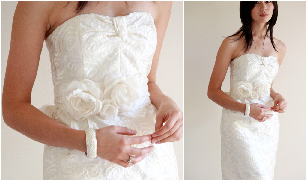 I love sash belts and think they can be the perfect way to complete a look. A few months ago I made a silk dupion sash belt with a ruched front panel, and lovingly adorned it with three signature ivory silky satin blossoms with Swarovski pearl centres. I have been meaning to take some pretty photos of the sash and it finally happened last week.